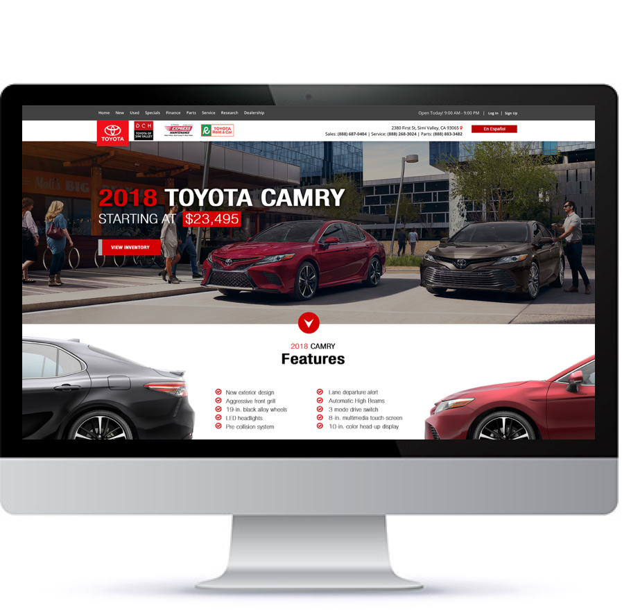 DCH Toyota of Simi Valley is a new and used Toyota dealership that proudly serves the areas of Camarillo and Thousand Oaks, California. I helped them create a landing page for model research pages.